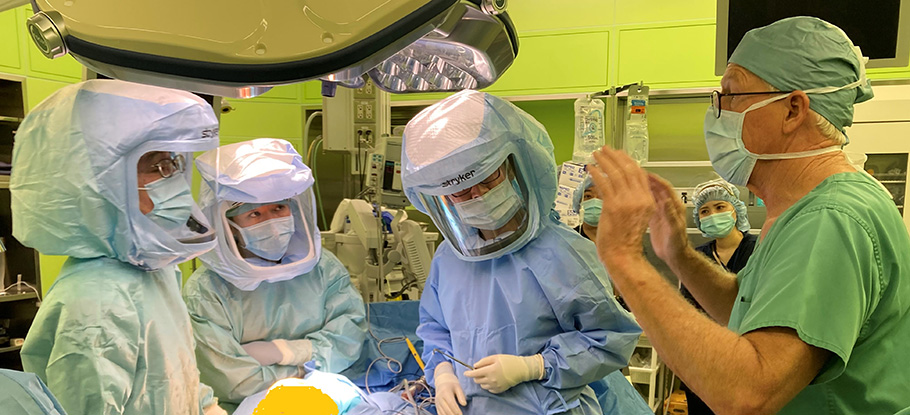 2025年12月8日にスティーブン・ハウエル博士が来院され、当院広島緑井人工関節センターの曽田統括院長、中村医師と共に人工膝関節置換術を実施されました。